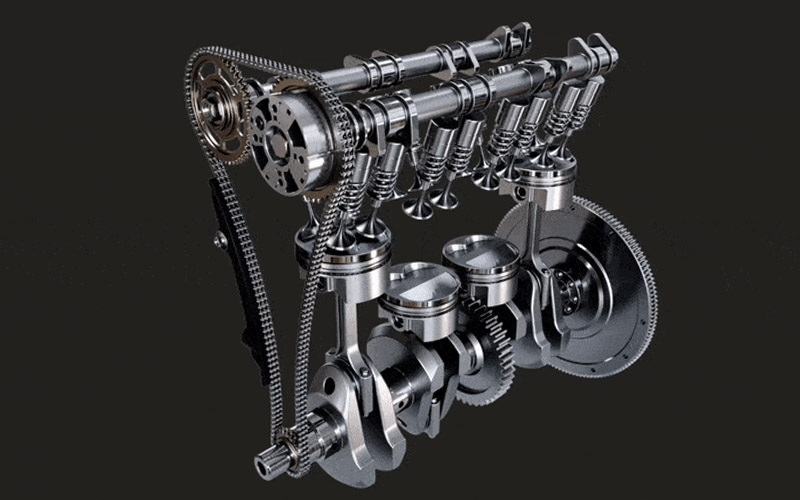 • ذخیره انرژی در فلایویل: بخشی از این انرژی در فلایویل ذخیره می‌شود تا در زمان‌های بی‌احتراقی، حرکت میل لنگ ادامه پیدا کند.